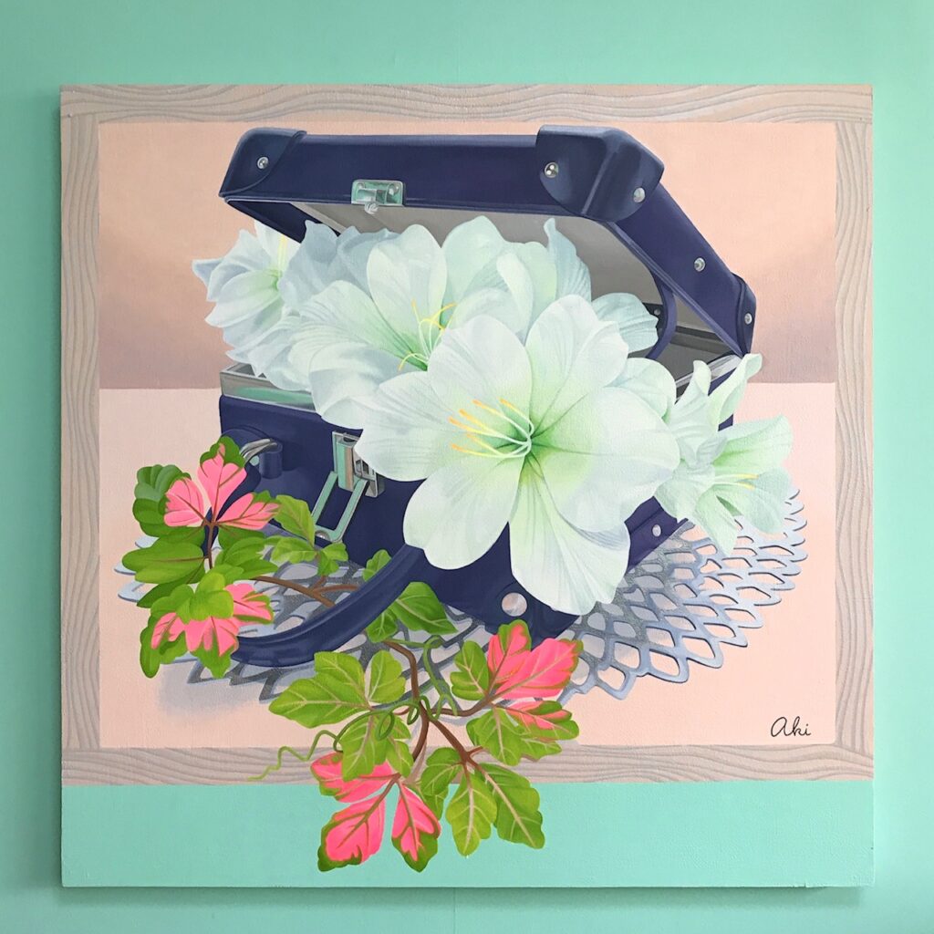 URLをコピーしました! アトリエ常設展示用に描き下ろした一枚。自分で塗った壁紙と同じ色を作品下部に取り入れて壁と一体化させました。額も絵です。描かれた額からモチーフである葉が飛び出してきている、遊び心のある一枚です。 共有: Facebook で共有するにはクリックしてください (新しいウィンドウで開きます) Facebook クリックして X で共有 (新しいウィンドウで開きます) X GALLERY この記事が気に入ったら いいね または フォローしてね! Follow @aki_okuno Follow Me よかったらシェアしてね! URLをコピーしました! 下絵 下絵(色鉛筆画) 関連記事 第63回 ミニヨン展 December 7, 2024 第4回 INTENSE September 9, 2024 SM 2014×2024 September 8, 2024 F4 Paisley September 8, 2024 F6 Peony September 8, 2024 P4. 夏の終わり September 8, 2024 八重百合〜艶〜 3号円形 January 29, 2024 第3回intense展 August 28, 2023