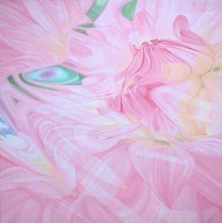 Baccarat(バカラ)トレイ越しに見えるダリアを描いた作品です。お花独自の柔らかさとバカラガラスのなめらかな曲線が交わって、見たことのない空間が描けました。