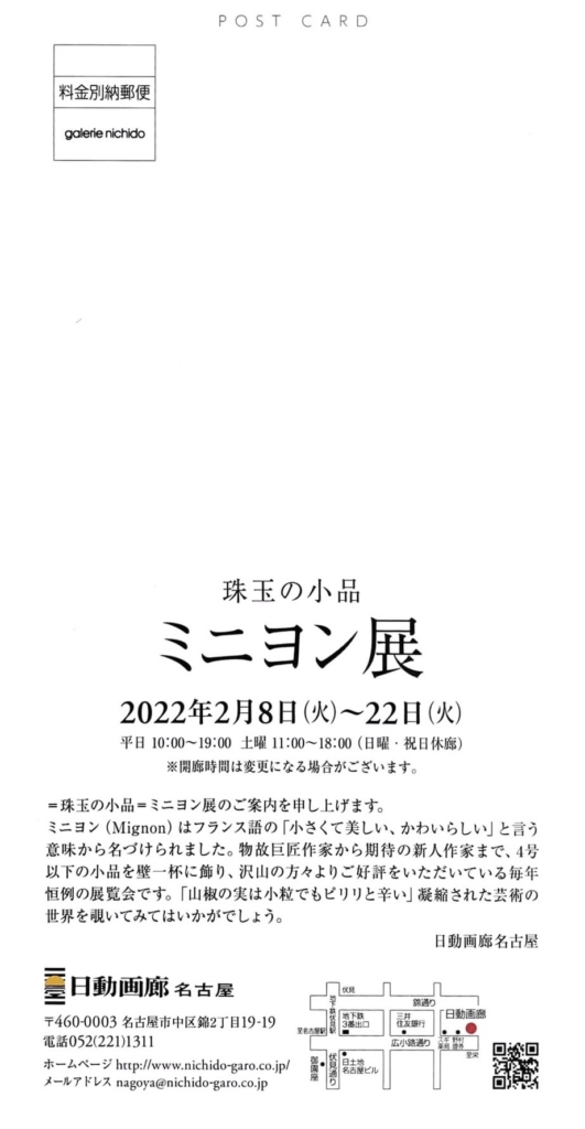 日動画廊名古屋で2022年2月8日(火)から22日(火)まで、珠玉の小品、ミニヨン展を開催しております。